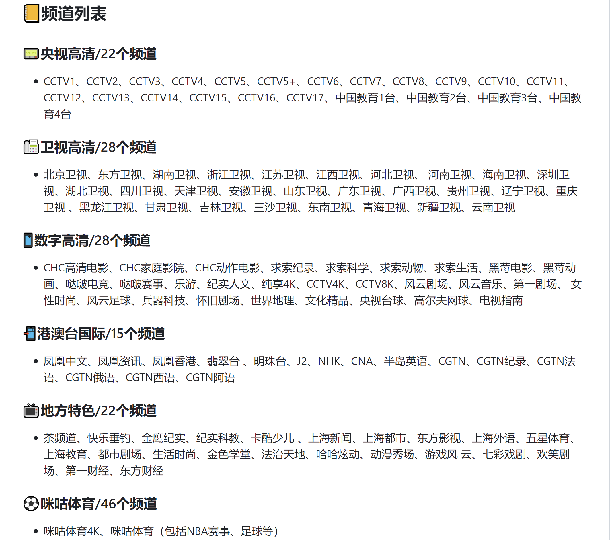 現在IPv4的直播源都快掛了,各種xxTV其實都封裝了直播源。一旦失敗,這些軟件就涼了。目前最穩妥的辦法就是想辦法解決IPv6,一勞永逸的使用IPv6直播源。或者使用運營商提供的IPTV服務。現在家庭帶寬基本都是連接IPv6的。這里分享一個在GitHub上找到的IPv6直播源倉庫。這個直播源的特點是有一個完善的TVlogo,持續更新,保證長期可用。